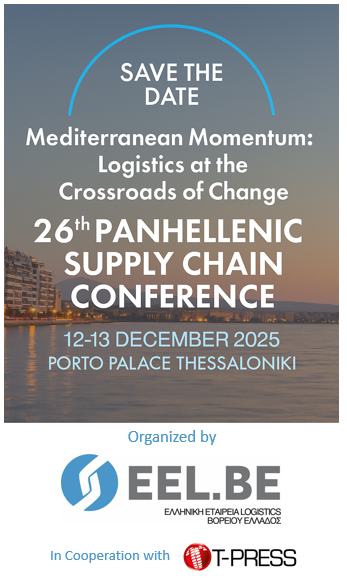 Η Ελληνική Εταιρεία Logistics Βορείου Ελλάδος, σε συνεργασία με την Τεχνοεκδοτική T-Press με ιδιαίτερη χαρά σας προσκαλούν να σημειώσετε στο ημερολόγιό σας το 26ο Πανελλήνιο Συνέδριο Εφοδιαστικής Αλυσίδας, με τίτλο “Mediterranean Momentum: Logistics at the Crossroads of Change”, το οποίο πρόκειται να πραγματοποιηθεί στις 12 & 13 Δεκεμβρίου 2025, στη Θεσσαλονίκη.