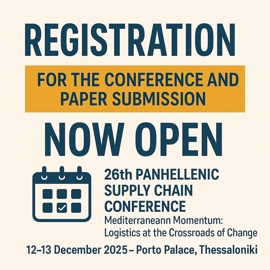 We are thrilled to announce that registrations and paper submissions are now open for the 26th Panhellenic Supply Chain Conference, titled “Mediterranean Momentum: Logistics at the Crossroads of Change.” The event will take place on 12–13 December 2025 at Porto Palace, Thessaloniki, bringing together leading professionals, academics, and innovators to explore the transformation of supply chains in the Mediterranean region. Don’t miss the opportunity to present your work, share insights, and connect with the logistics community shaping the future of the industry.